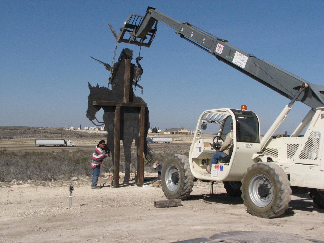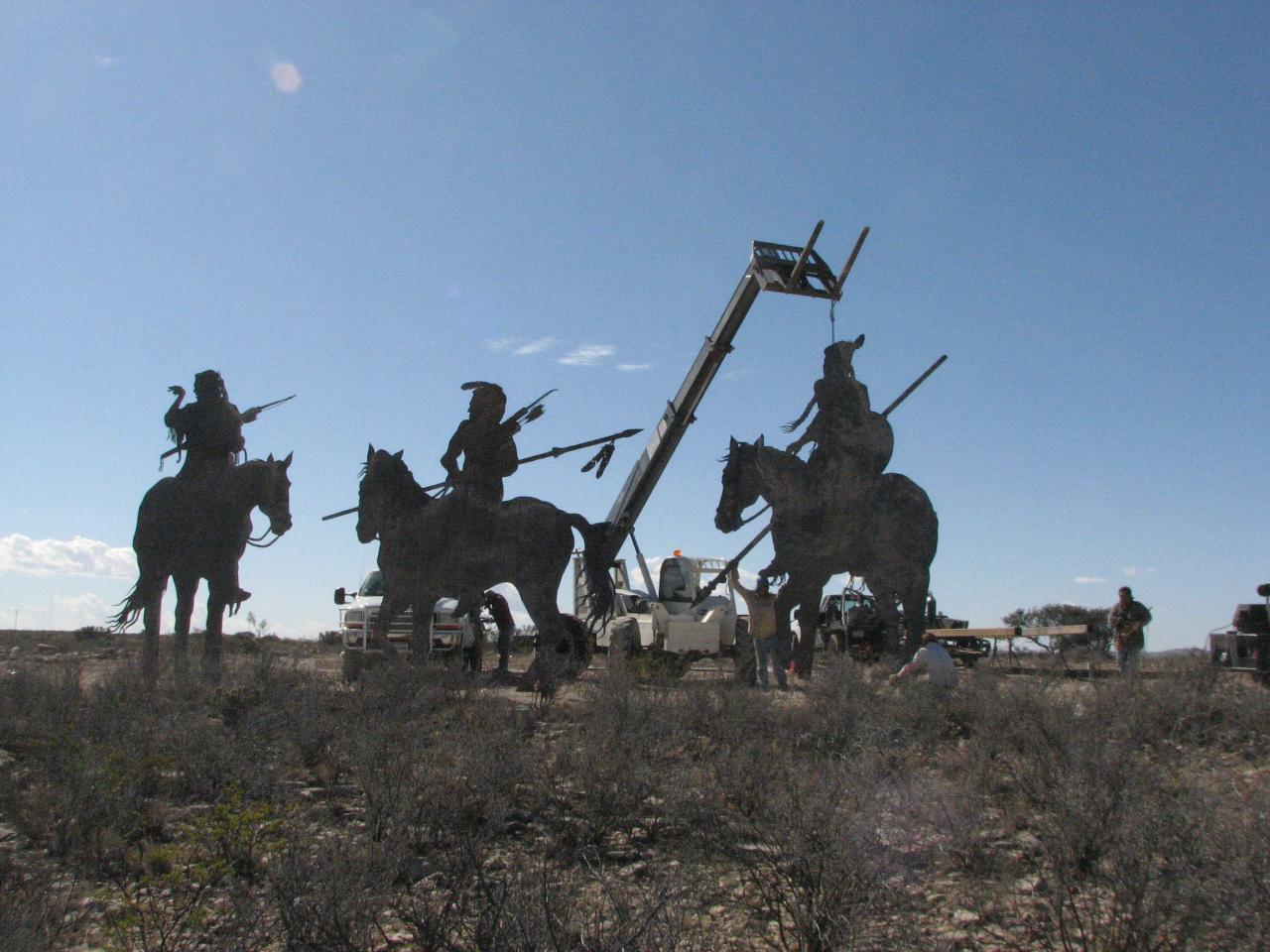 I recently completed a number of sculptures for the City of Fort Stockton, Texas. The photos below give an indication of what it took to lay out, cut and install the two larger groupings of these silhouettes--a column of cavalry and a small hunting party of Comanche. The cavalry sculpture is titled "Marching to Fort Stockton", and the Comanche are called "Look to the East". These two groupings sit east and west of the city just off Interstate 10. They are part of an ongoing project to promote Fort Stockton's history and increase tourism.